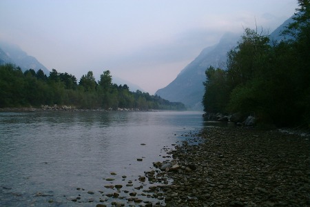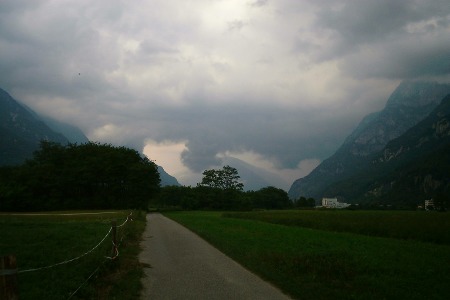 An unserem idyllischen Plätzchen am Ticino zogen am Sonntag Morgen dicke Gewitterwolken auf.