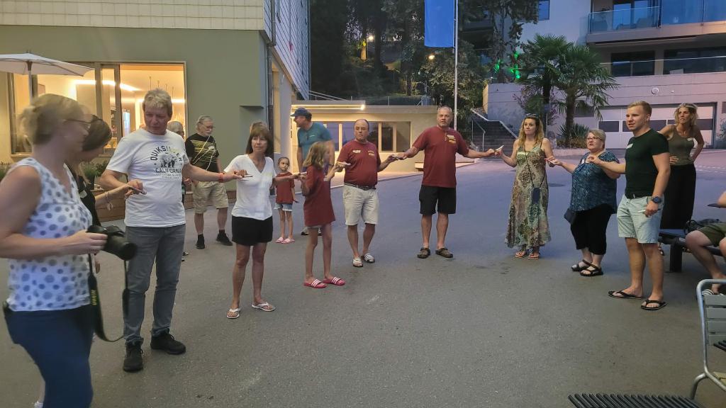 Am letzten Augustweekend fand wieder unser traditioneller Clubausflug statt. Dieses Jahr waren wir als Belohnung für den erhöhten Arbeitsaufwand wegen des Dorffestes 3 Tage unterwegs Am Freitagmorgen konnte der Car pünktlich in Richtung Westschweiz losfahren, der erste Halt war in Charmey. Wir mussten und vorab für eine Richtung des Programms anmelden. Die actionreiche Gruppe verbrachte den Vormittag im Kletterpark, am Ende wagten sich einige sogar auf den schwersten Parcours. Eine weitere Gruppe ging auf Schatzsuche, mittels einer Karte, einem Kompass und einem Fernglas konnten sie immer weitere Hinweise auf den Schatz finden. Als erstes wurde dieser von der Gruppe mit Mia und Naya gefunden. Die dritte Gruppe verbrachte den Vormittag auf einem gemütlichen Spaziergang mit schöner Aussicht, dass diese Gruppe die gefährlichste war, hätte wohl niemand gedacht. Leider sind 3 Mitglieder gestürzt, ernsthaft verletzt wurde zum Glück niemand. Nach einem gemeinsamen Mittagessen ging es mit dem Trotti, zu Fuss oder mit der Gondel wieder runter ins Tal.