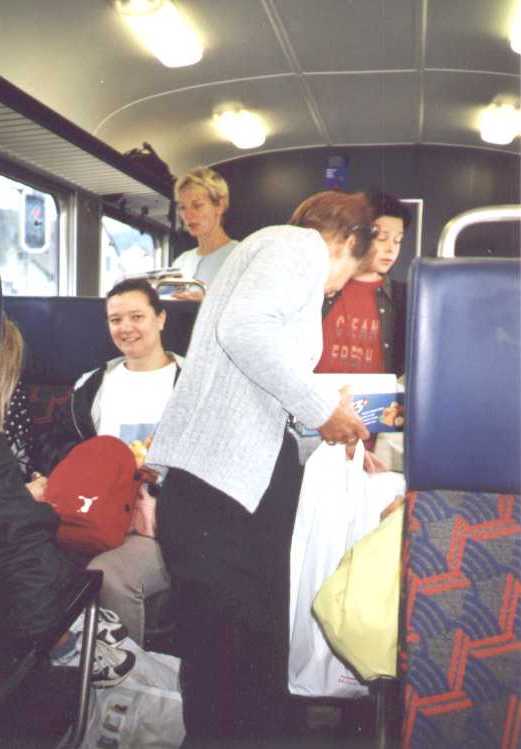 Nach einem Spurt von Ruth quer durch den ganzen Bahnhof gings um 08.03 Uhr los Richtung Winterthur. Der Zug war voll bis auf den letzten Platz, Vreni verteilte die erste Verpflegungsrunde.