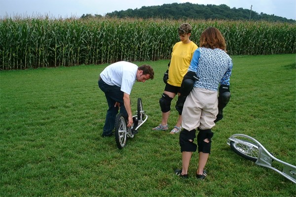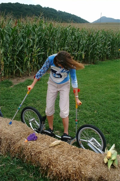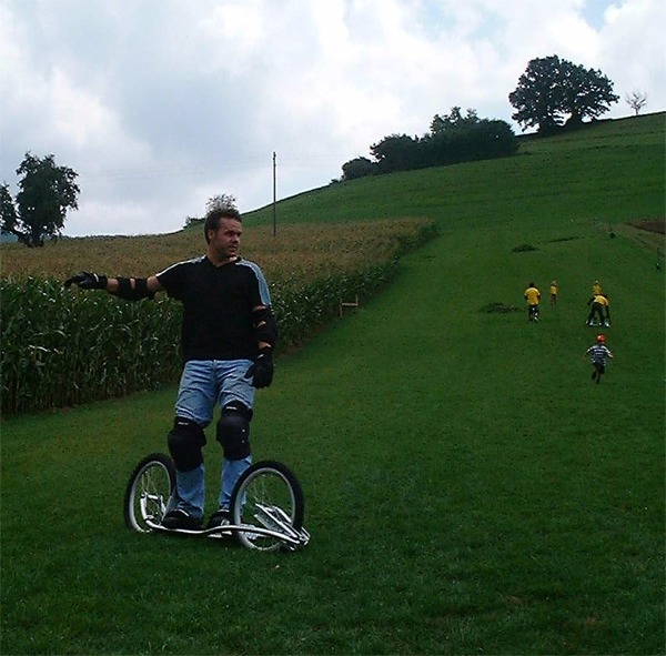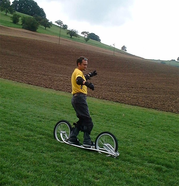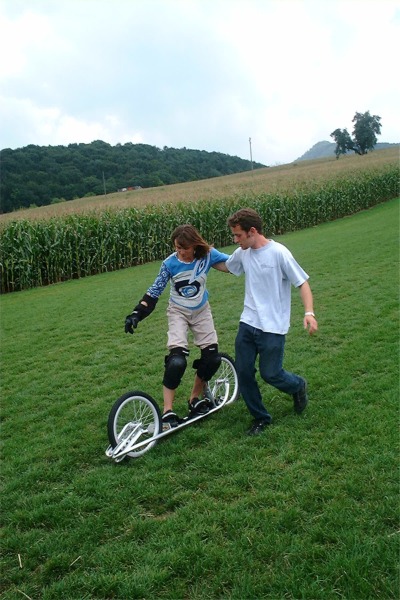 Barbaras erste Versuche auf dem Dirtsurfer mit etwas kuriosem Hilfsmittel...
